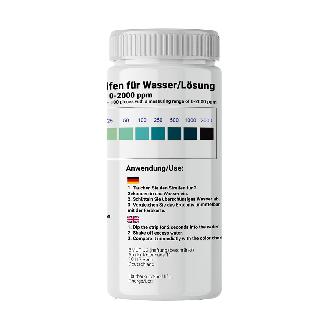 ✓ Large plage de mesure (0 à 2000 ppm) : parfait pour tester aussi bien des solutions à faible concentration que des dosages plus élevés.